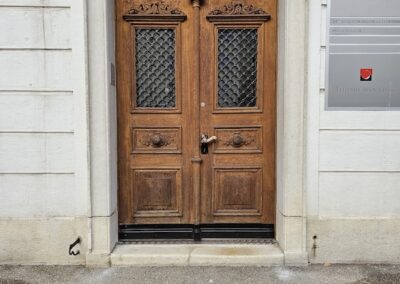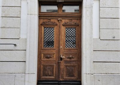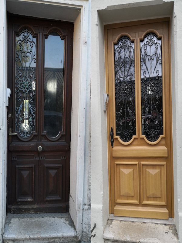 Portes d’entrée (maison ou immeuble) : bois-métal, assemblées